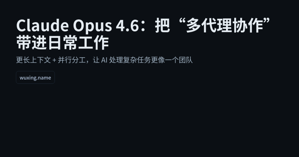 如果你最近感觉:同一件事要查资料、做表格、写方案、再把结果塞进 PPT——真正耗时的不是“写字”,而是在多个步骤之间反复切换。这两天 AI 圈里一个值得普通人关注的更新,就是 Anthropic 发布的 Claude Opus 4.6:它把“分工协作”的思路做进了模型能力和工具链里,让 AI 更像一个能拆活、能并行推进的工作搭子。