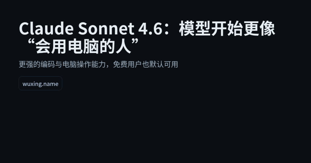 聊天机器人“能回答问题”已经不稀奇。更让普通人有体感的,是它能不能替你把一件事做完:打开网页、填表、整理表格、改代码、把零散资料串起来。这个方向里,Anthropic 近日把中档模型升级到 Claude Sonnet 4.6,并把它设为 Claude(含免费用户)和 Claude Cowork 的默认模型。