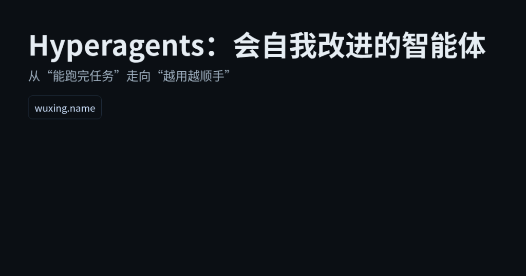这两天 arXiv 上一篇新论文提出了一个很有意思的方向:让智能体不只“完成任务”,还要能持续改进自己“做事的方法”。作者把这种系统叫做 Hyperagents(超代理)。简单说:它一边干活,一边改进自己的工作流。