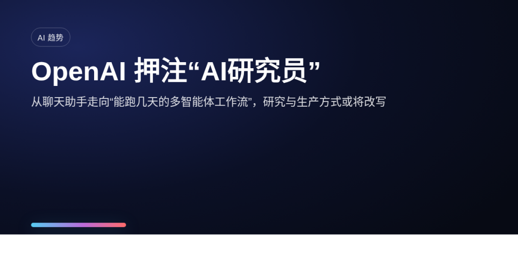 如果把AI只当作“会聊天的工具”,你可能低估了它下一步会去哪里。最近,MIT Technology Review 报道称,OpenAI 正把研究重心对准一个更激进的目标:打造“AI研究员”——一种能自己拆解问题、调用工具、持续推进的多智能体系统。