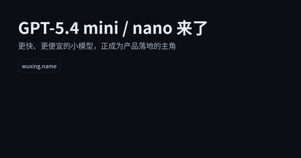 这两天,OpenAI 发布了两款更“小、更快、更省”的新模型:GPT‑5.4 mini 和 GPT‑5.4 nano。它们把不少 GPT‑5.4 的能力压缩到更低延迟、更低成本的形态里,面向的不是“炫技”,而是更接近日常产品的高频场景:写代码、调用工具、看图理解界面、做一堆自动化小任务。